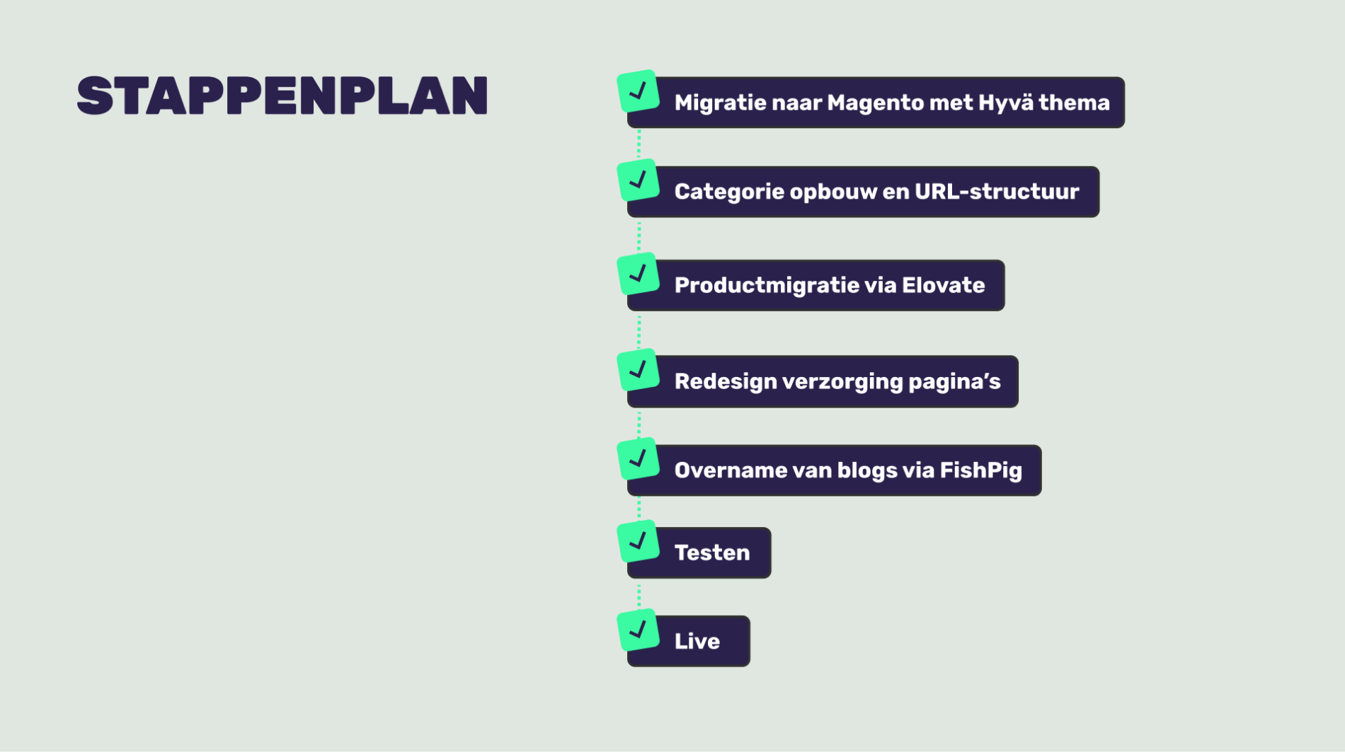 Omdat Plantje op WooCommerce draaide, was de eerste stap een migratie naar Magento. Daarbij is gekozen voor het Hyvä thema, gericht op optimale prestaties binnen de Web Core Vitals en een snellere, technisch sterke webshop.